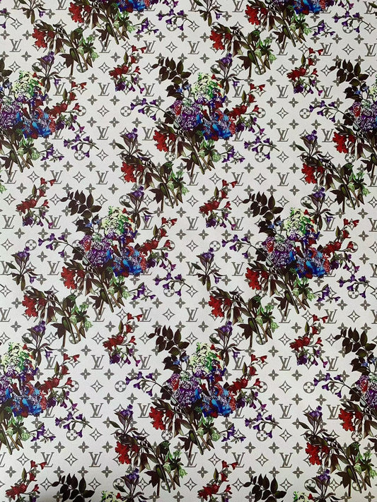 Fashion LV With Petunia Flower Craft Leather Fabric For Handmade Bag ,Sneaker,Upholstery Goods By Yard