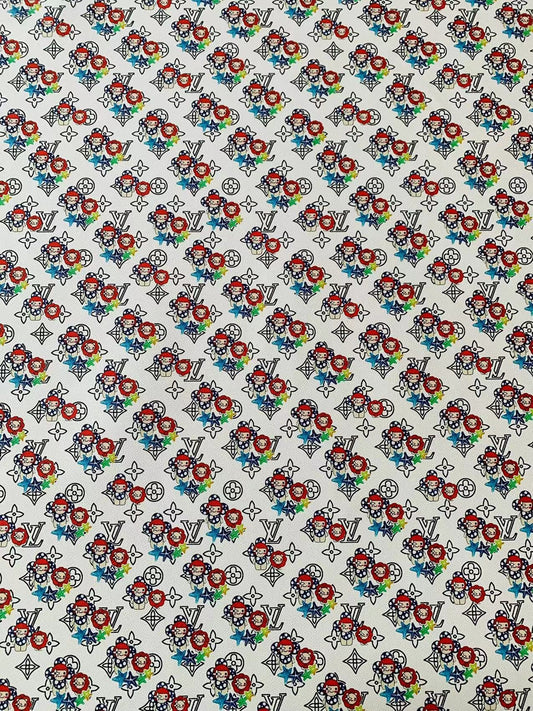 Fashion LV With Takashi Murakami Leather Fabric For Handmade Sneaker, Upholstery By Yard