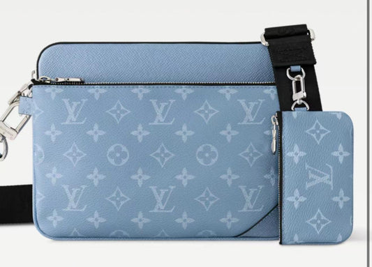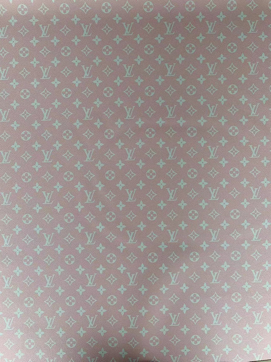 Fashion Mist Blue LV Vinyl Leather Fabric For Handmade Shoes, Wallet,Upholstery Goods By Yard