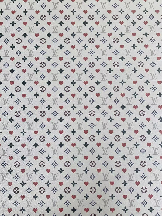 Classic Love LV Leather Case Fabric,Handmade Bag Fabric,Hand-made Shoes Leather Fabric By Yard (White)