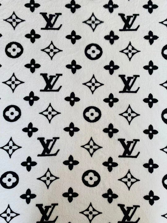 Classic LV Double-Sided Flannel Knitted Jacquard Plush Fabric For Handmade Handicrafts By Yards (White)