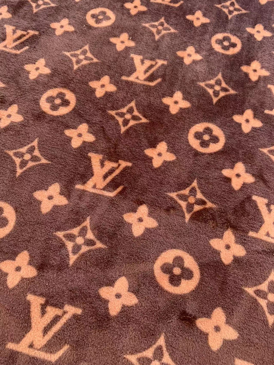 Classic LV Double-Sided Flannel Knitted Jacquard Plush Fabric For Handmade Handicrafts By Yards (Brown)