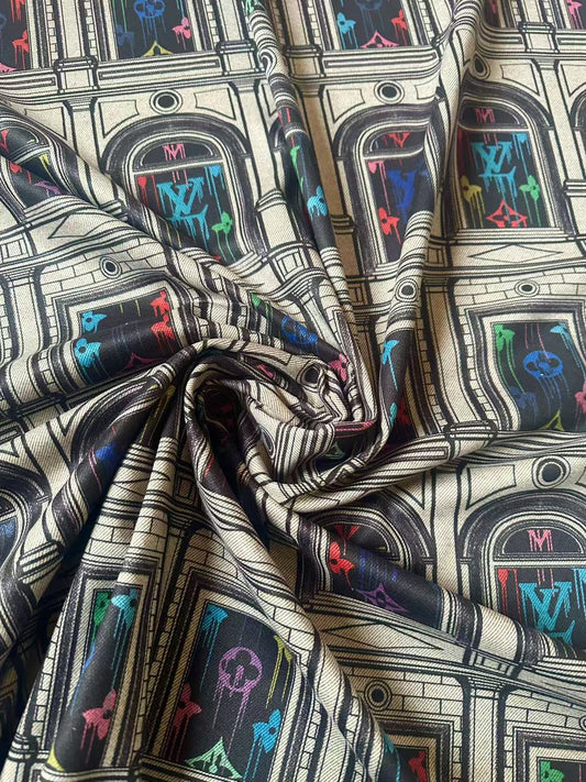 Craft Mosaic Wash LV Damier Jacquard Denim Jean Fabric For Handmade Sewing DIY Upholstery ,Apparel