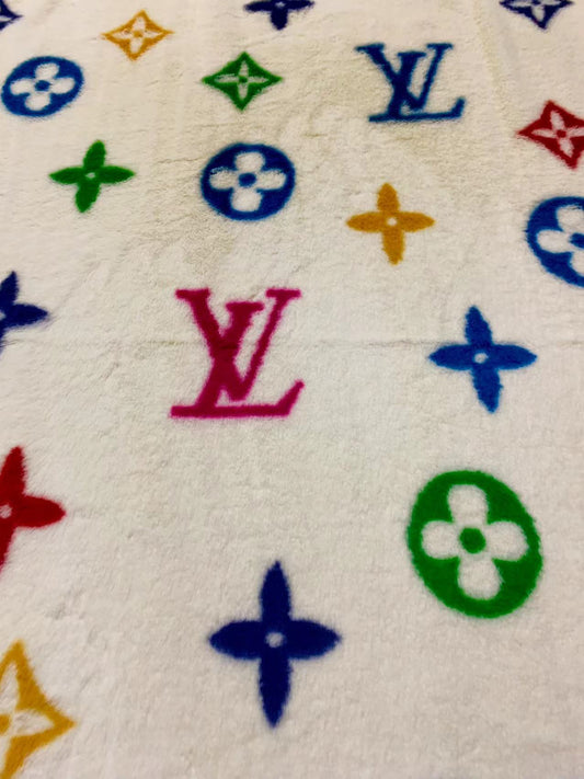 Fashion Colorful LV Design Flannel Knitted Jacquard Plush Fabric For Handicrafts By Yards