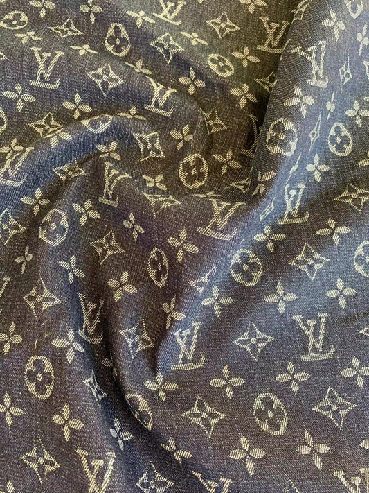 Fashion Dark Blue LV Denim Woven Jacquard fabric ,Jean Fabric For Handmade Goods By Yard