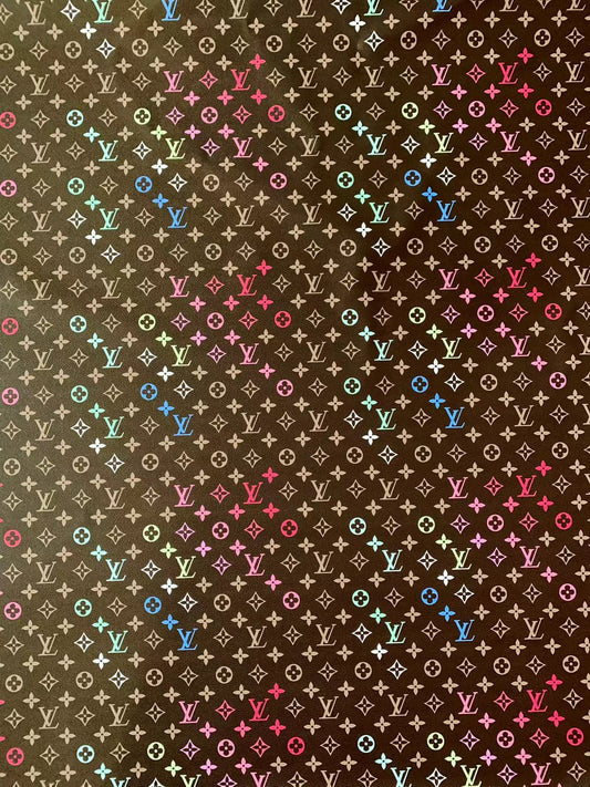 New Black Background Colorful LV Leather Case Fabric,Handmade Bag Fabric,Hand-made Shoes Fabric By Yard