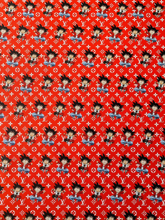 New Cartoon Design Son Goku With LV Leather Fabric For Handicrafts