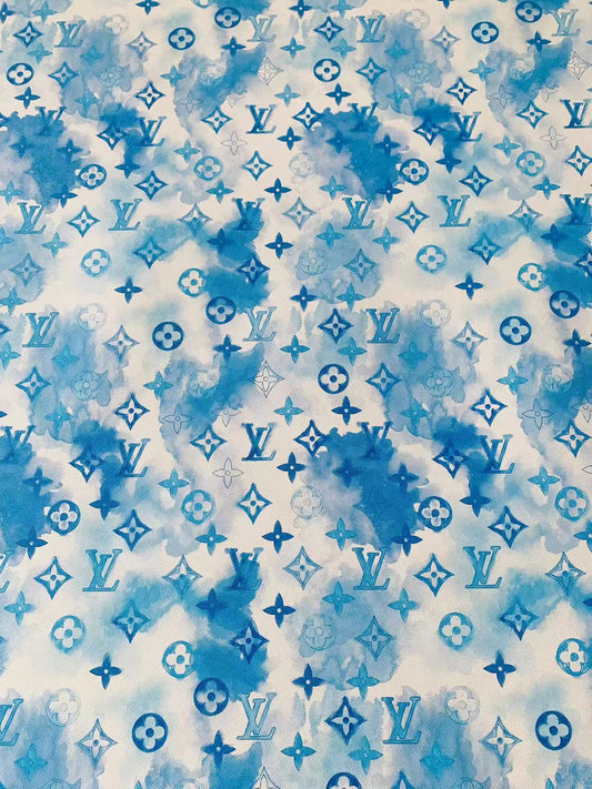 New 4CM Size Watercolour Blue LV Leather Fabric For Handmade Bag, Shoes Upholstery By Yard