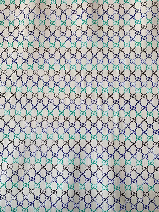 Craft Gradual Change Blue Color Gucci Deisgn Leather Fabric For Handmade DIY Shoes Upholstery (White)