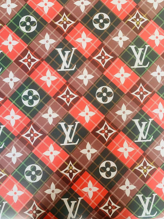 Classic LV With Plaid Design Leather Case Fabric, Handmade Bag Fabric, Hand-made Shoes Leather Fabric By Yard ( Big Size)