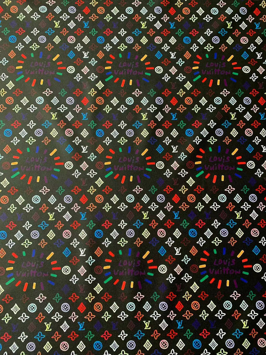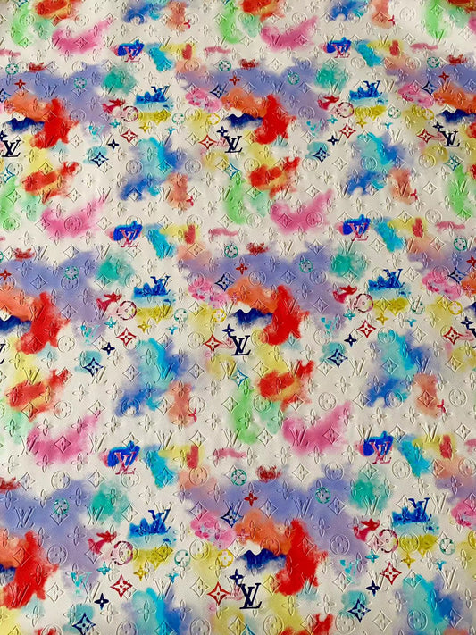 Tianchao Store New Craft LV Embossed Leather Fabric With Colorful Ink Pigment Deisgn For Handicraft By Yard