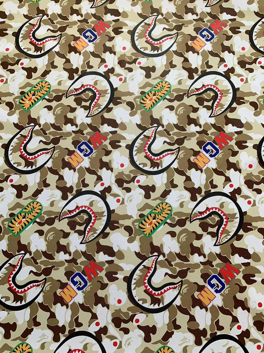 Tianchao New Camouflage Color Bape Shark Teeth WGM Design Custom Leather Fabric For Bags Leather Shoes Custom Leather By Yard