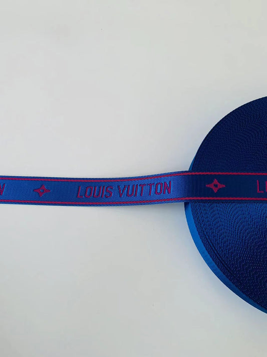 Craft LV 1.5 Inch Handmade Trim Embroidered Blue With Pink Stripe Ribbon By Yard