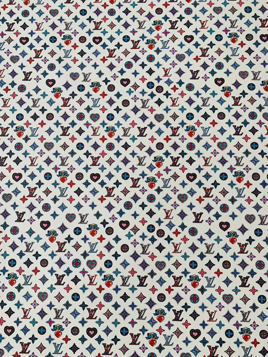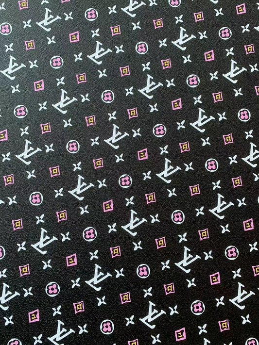 Craft LV Pink With White Graffiti Design Vinyl Leather For Handmade Handicraft Goods By Yard