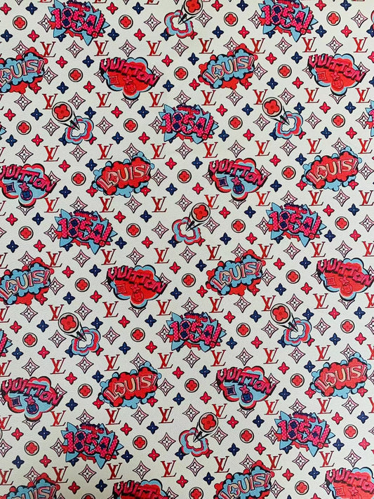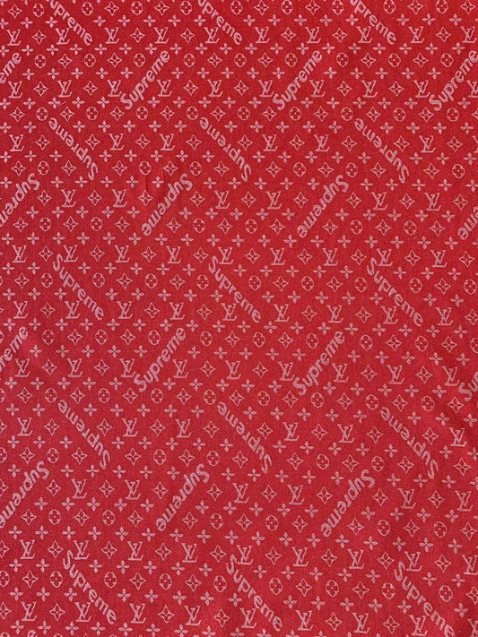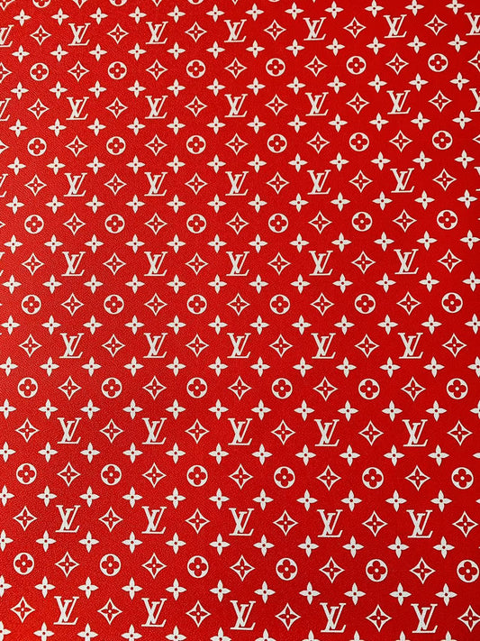 Classic Red With White LV Vinyl leather fabric For Handmade Bag ,DIY shoes , Car leather By Yard