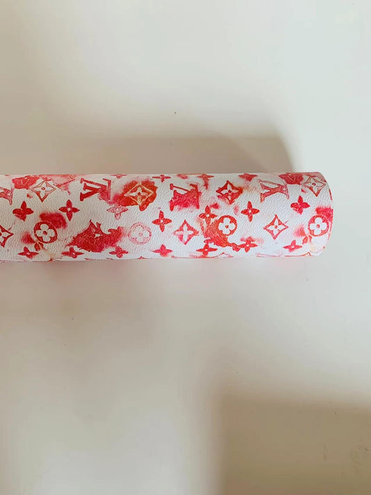 Classic Watercolour LV Leather Case Fabric, Handmade Bag Fabric, Hand-made Shoes Fabric By Yard (Red)