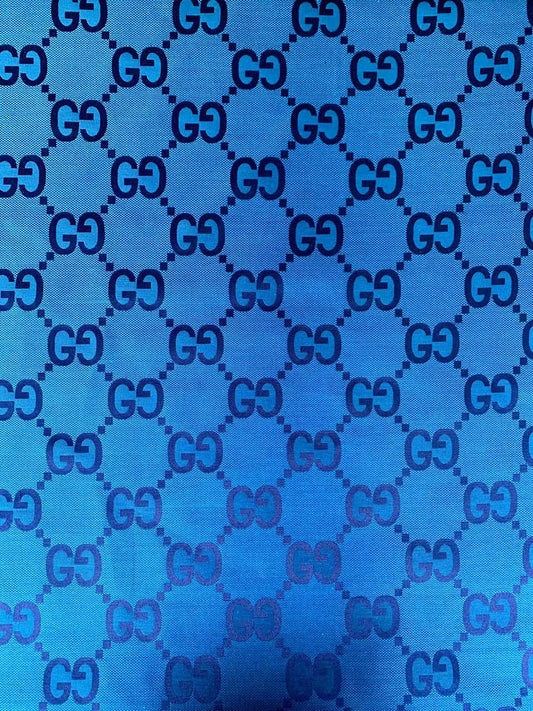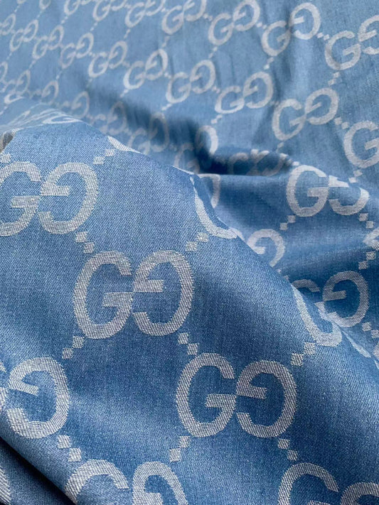 Classic Gucci 2.3 Inch Canvas Jacquard Cloth Fabric, GG Fabric,Handmade Clothing ,Fashion Sewing DIY Bags Fabric Shoes Fabric Hat Fabric Gucci Design By Yards (Sky Blue)
