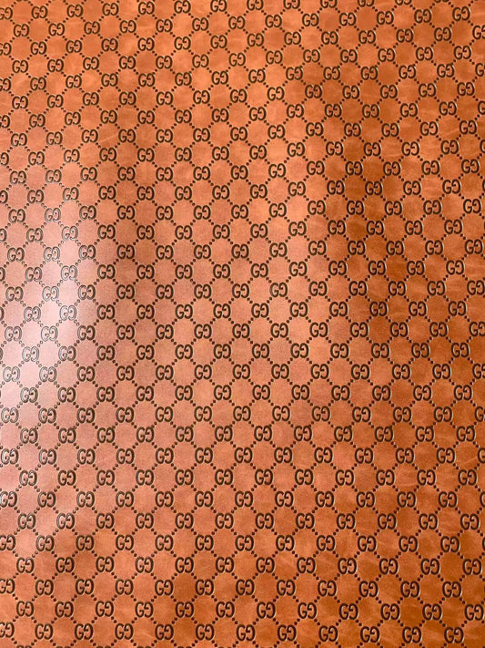 Classic Brown Gucci Embossed Leather Fabric For Handmade Sneaker,Bags,Upholstery Goods By Yard