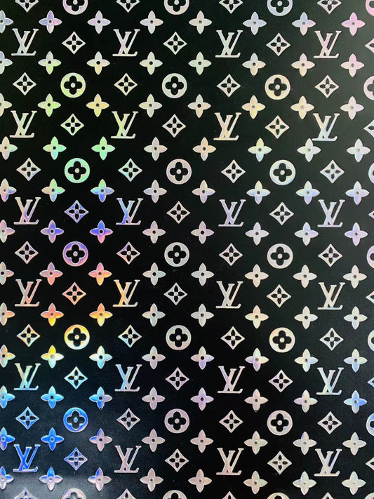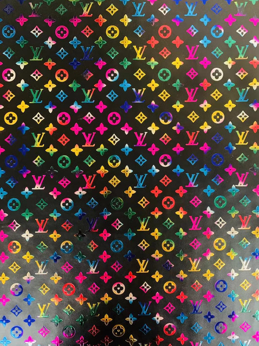 Classic LV Lighting Colorful Embossed Leather Fabric ,Handmade Bags Leather ,Handmade Shoes Leather By Yard(Black Light colorful)
