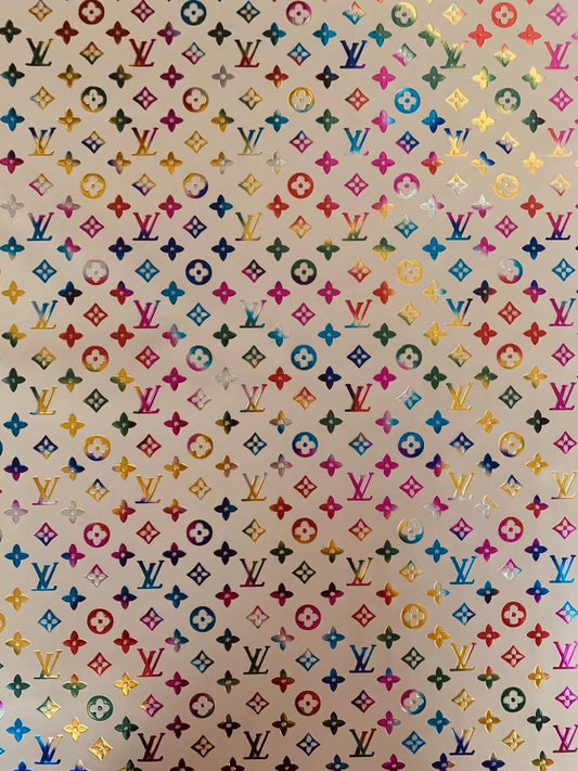 Classic LV Lighting Colorful Embossed Leather Fabric ,Handmade Bags Leather ,Handmade Shoes Leather By Yard(white Light colorful)