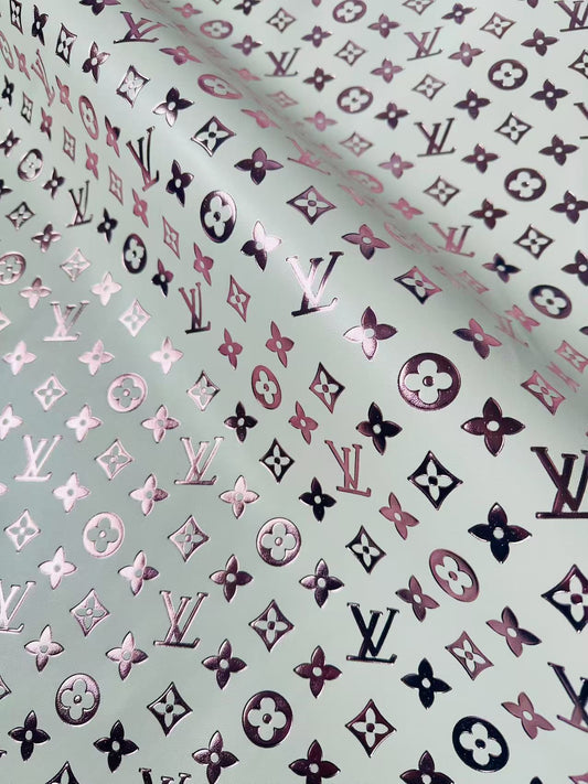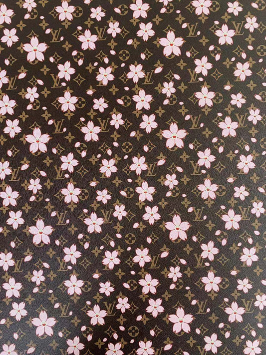Classic LV Pink Flower Leather Case Fabric, Handmade Bag Fabric, Hand-made Shoes Fabric By Yard