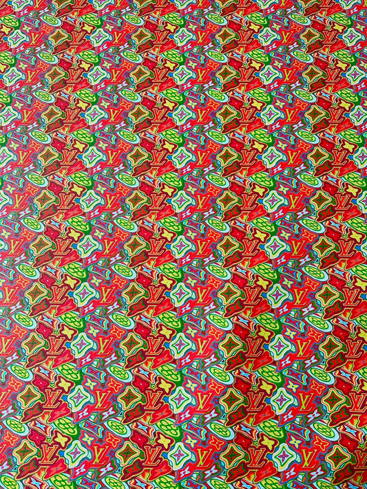 Classic LV With Graffiti Letter Design Vinyl Leather for Handmade Shoes ,Handmade Bags Leather By Yard (Orange )