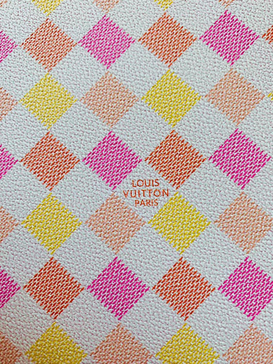 Classic Pink Yellow Damier Louis Vuitton Leather For Bag Upholstery Car Seat and Shoes By Yard