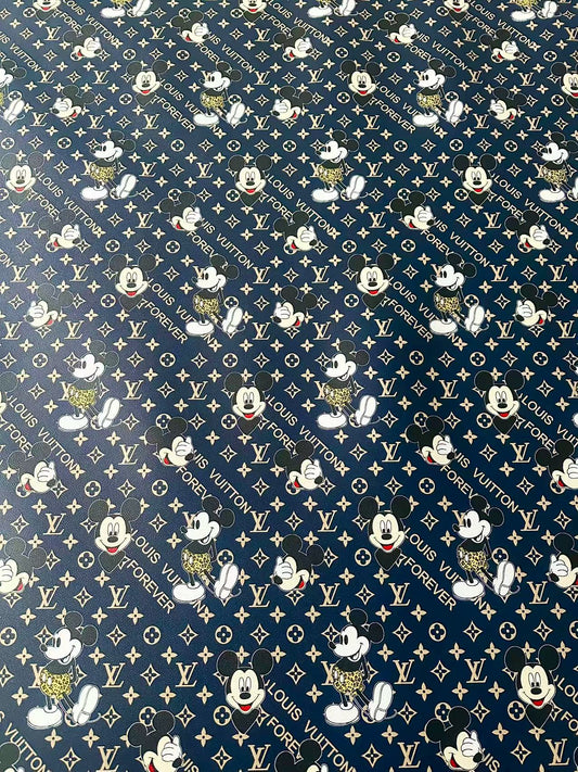 Craft Best Quality Navy Blue LV With Mickey Mouse Vinyl Leather Fabric For Handmade Sneaker,Upholstery Goods By Yard