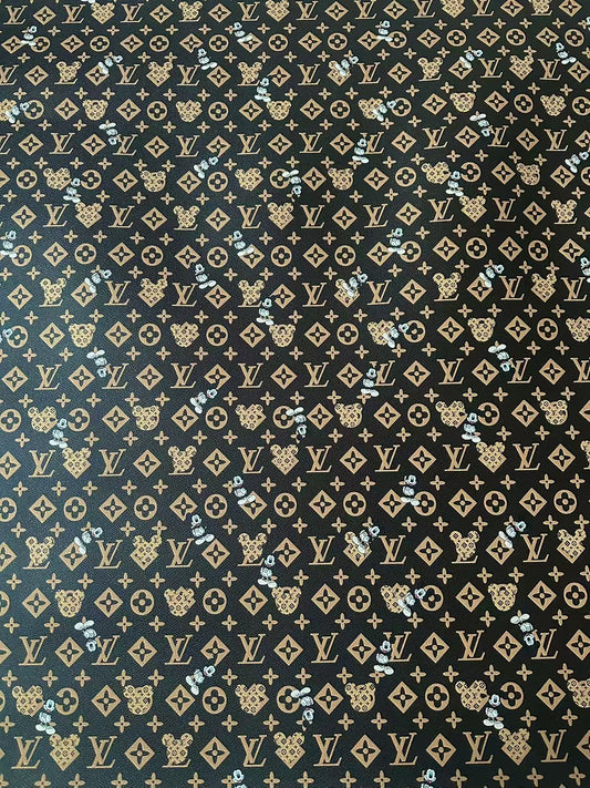 Craft Best Quality LV With Mickey Mouse Vinyl Leather Fabric For Handmade Sneaker,Upholstery By Yard