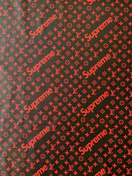 Fashion Black With Red LV Supreme Leather Case Fabric,Handmade Bag Fabric,Hand-made Shoes Fabric By Yard