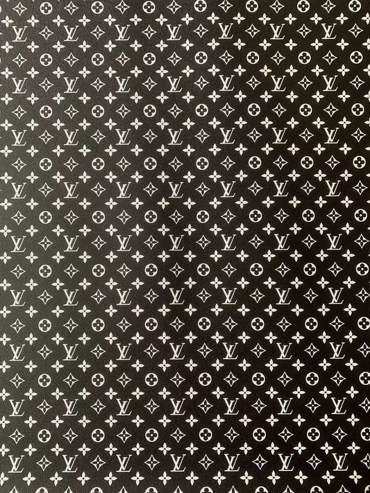 Fashion Black With White LV Vinyl Leather Fabric Material For Handmade Hancirafts Goods By Yards