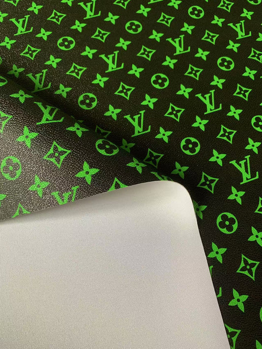 Fashion Black With Green LV Vinyl Leather Fabric For Handmade Sneaker,Furniture ,Upholstery Goods By Yard