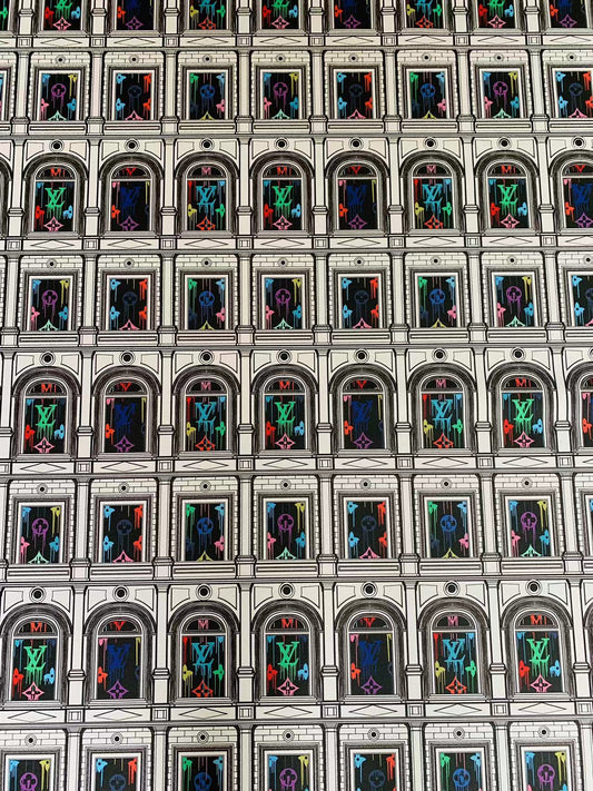 Fashion Black LV With Window Design Leather Fabric For Handmade Shoes ,Upholstery ,DIY Goods By Yard