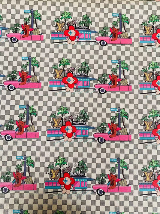 Fashion Louis Vuitton Bear Design Hollywood Leather Case Fabric, Handmade Bag Fabric, Hand-made Shoes Fabric By Yard