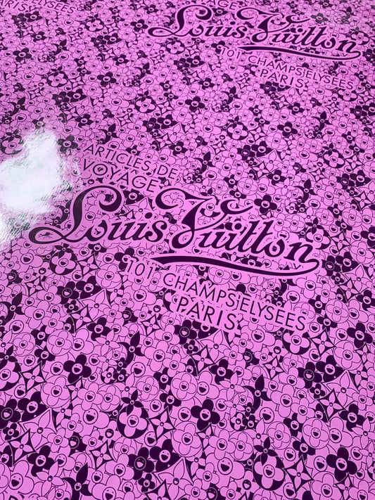 Fashion LV Black with Purple Design Vinyl Leather Fabric For Handmade Shoes , Handmade Sneakers ,Bags By Yards