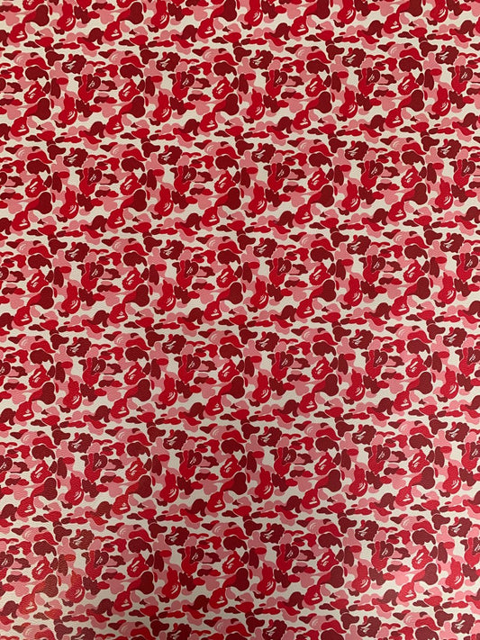 Classic Bape Fashion Custom Leather Fabric For Bags Leather Shoes Custom Leather By Yard (Red)