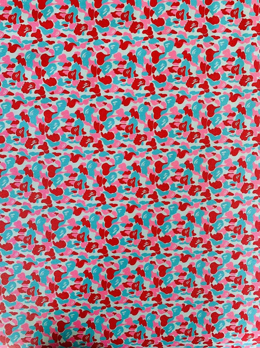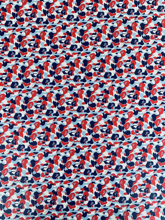 Classic Bape Fashion Custom Leather Fabric For Bags Leather Shoes Custom Leather By Yard (Red with Sky Blue)