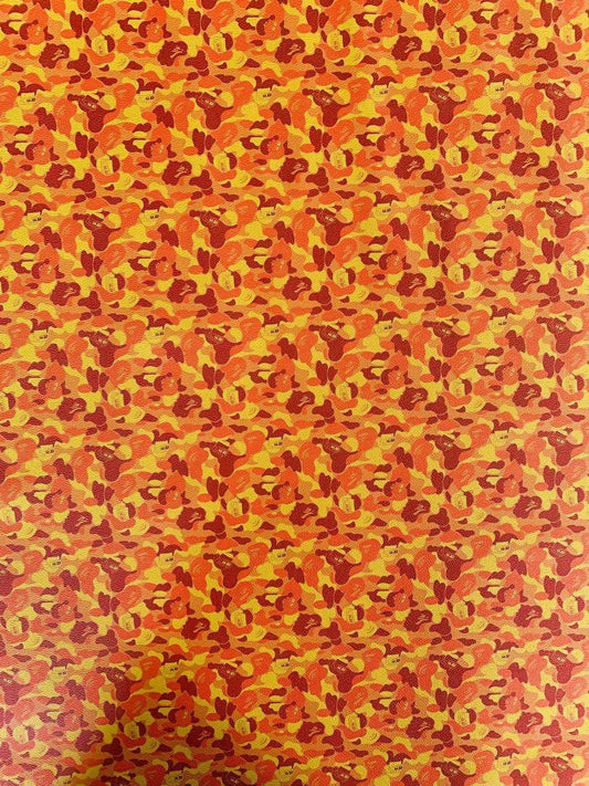 Classic Bape Fashion Custom Leather Fabric For Bags Leather Shoes Custom Leather By Yard (Orange)