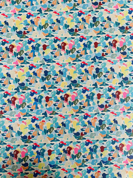 Classic Bape Fashion Custom Leather Fabric For Bags Leather Shoes Custom Leather By Yard (Colorful Rainbow )