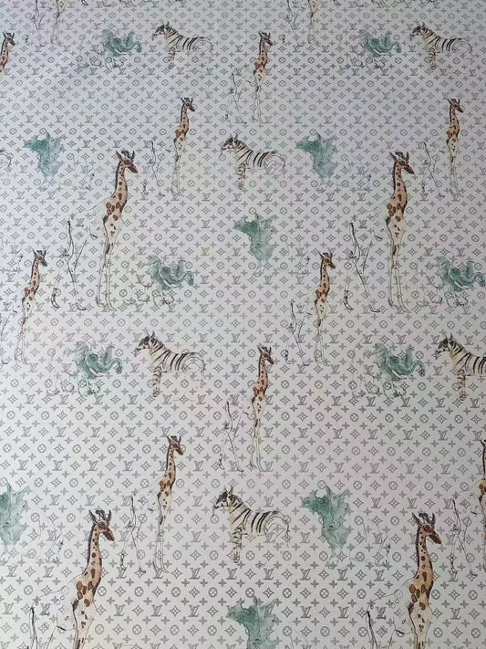 Fashion LV With Animal Vinyl Leather Fabric For Handmade Shoes, Upholstery Goods By Yard