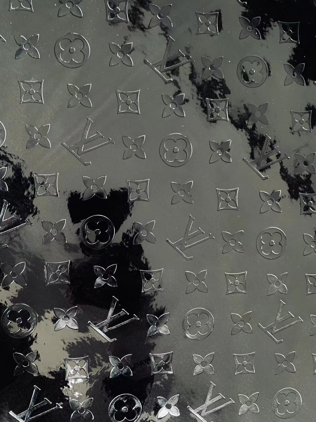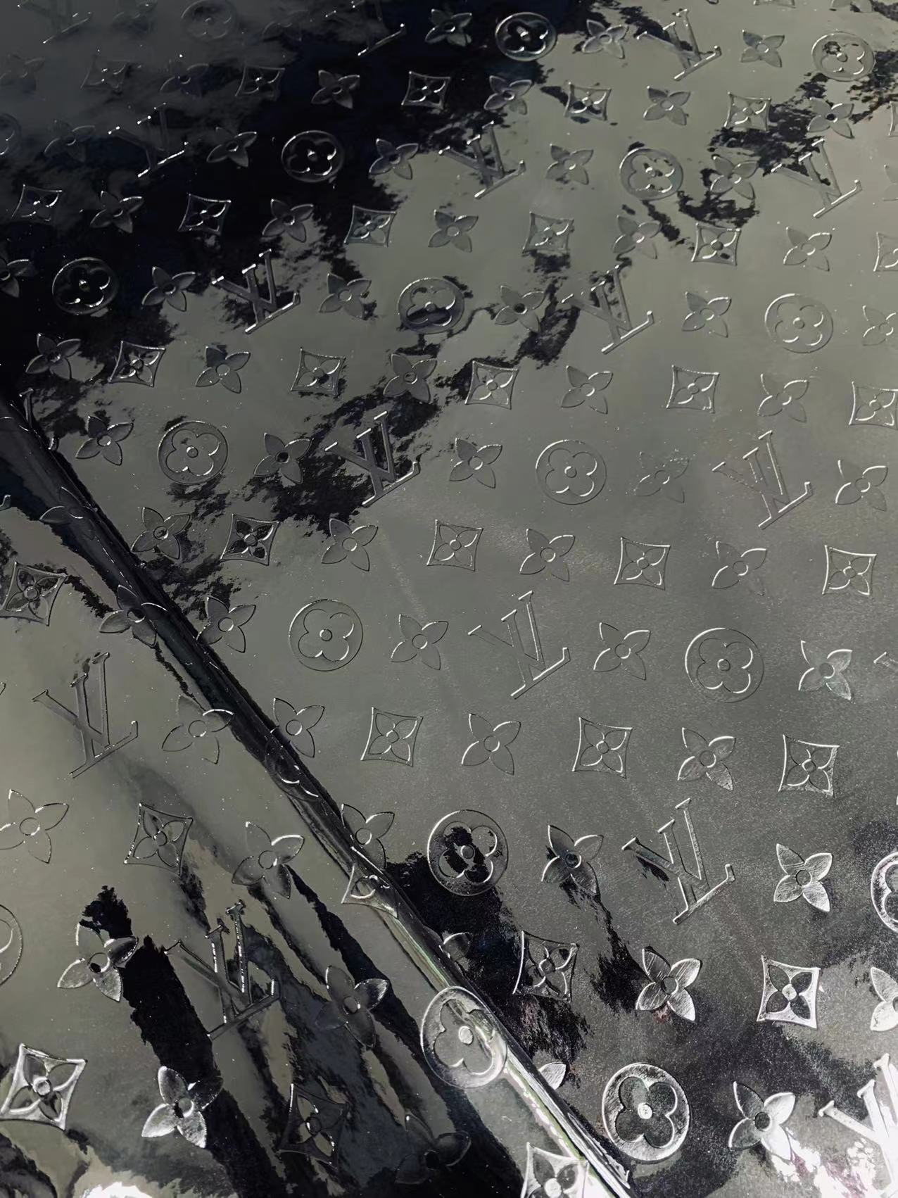 Bright Black Embossed LV Leather Fabirc,Lacquer Leather For Handmade shoes,bags ,furniture customized By Yards