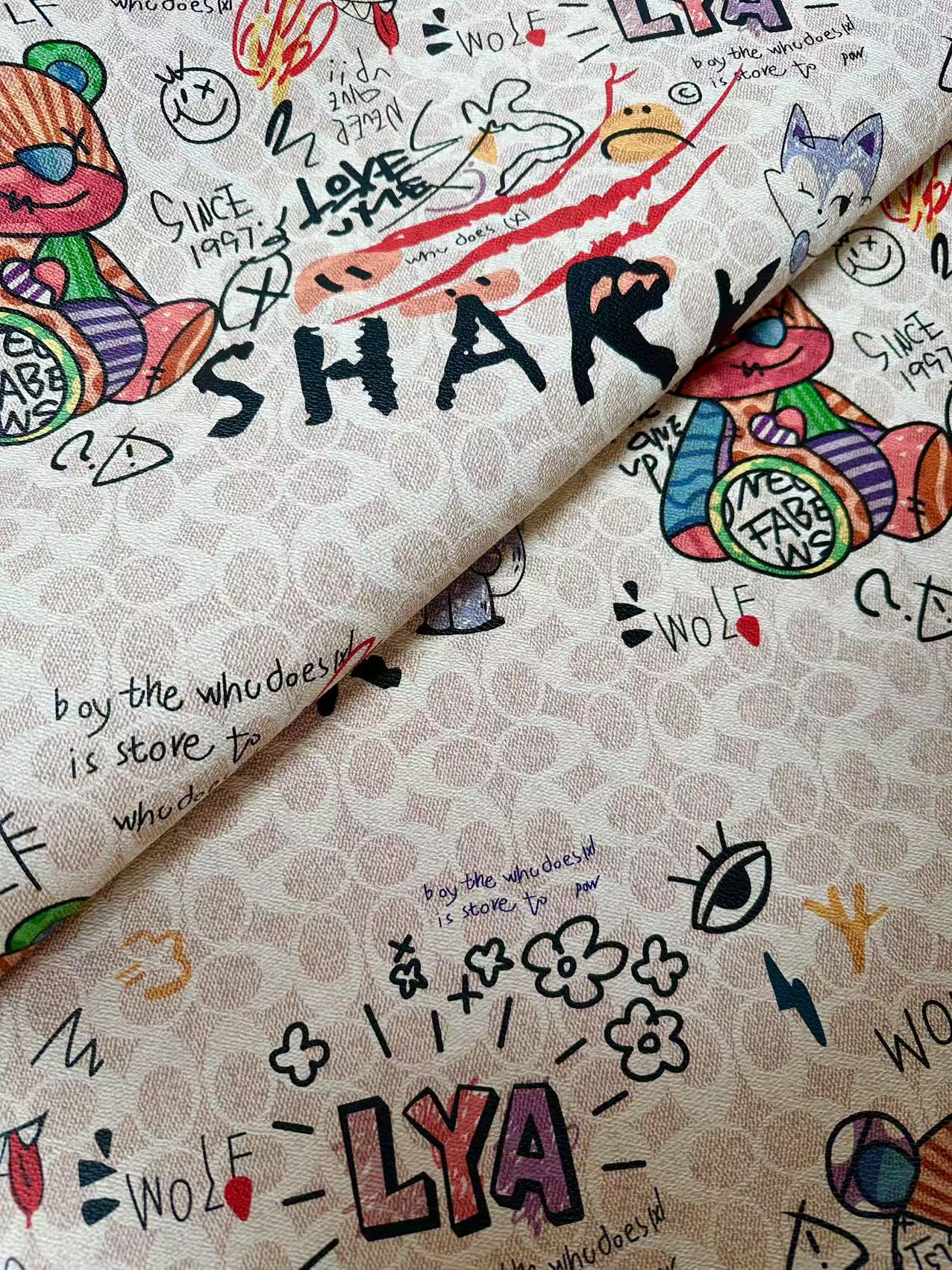 Classic Cartoon Coach Leather For Handmade Bag,Sneaker Upholstery Goods By Yard