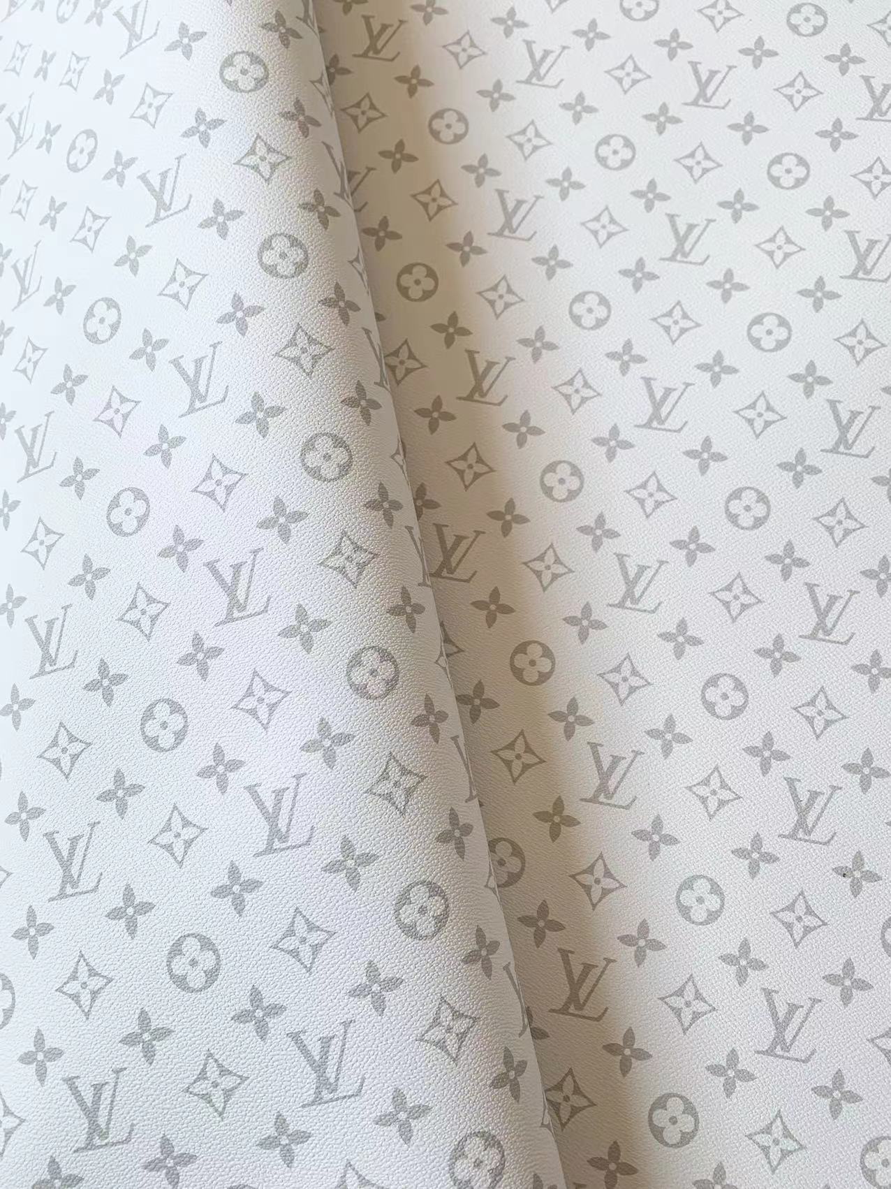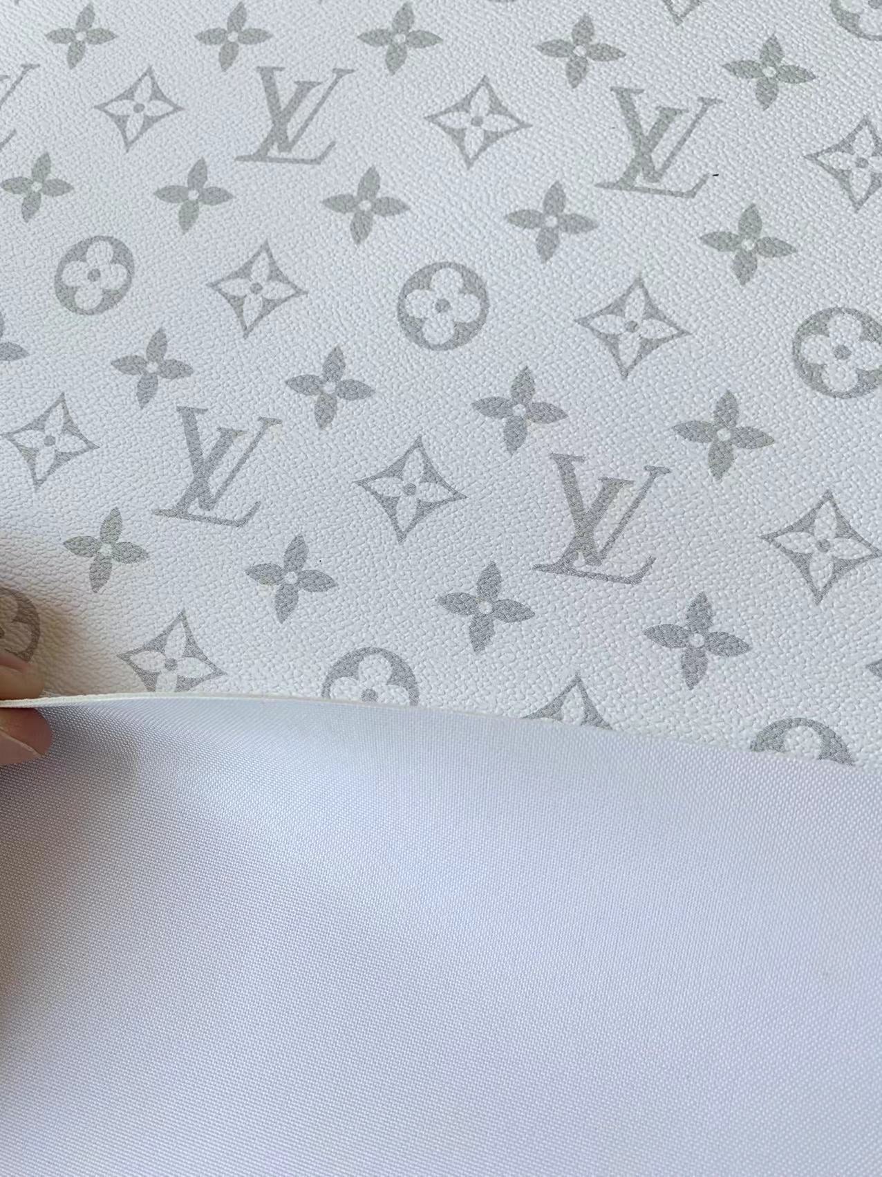 Classic Lighter White LV Vinyl Leather Fabric For Handmade Bag ,Sneaker,Upholstery Goods By Yard
