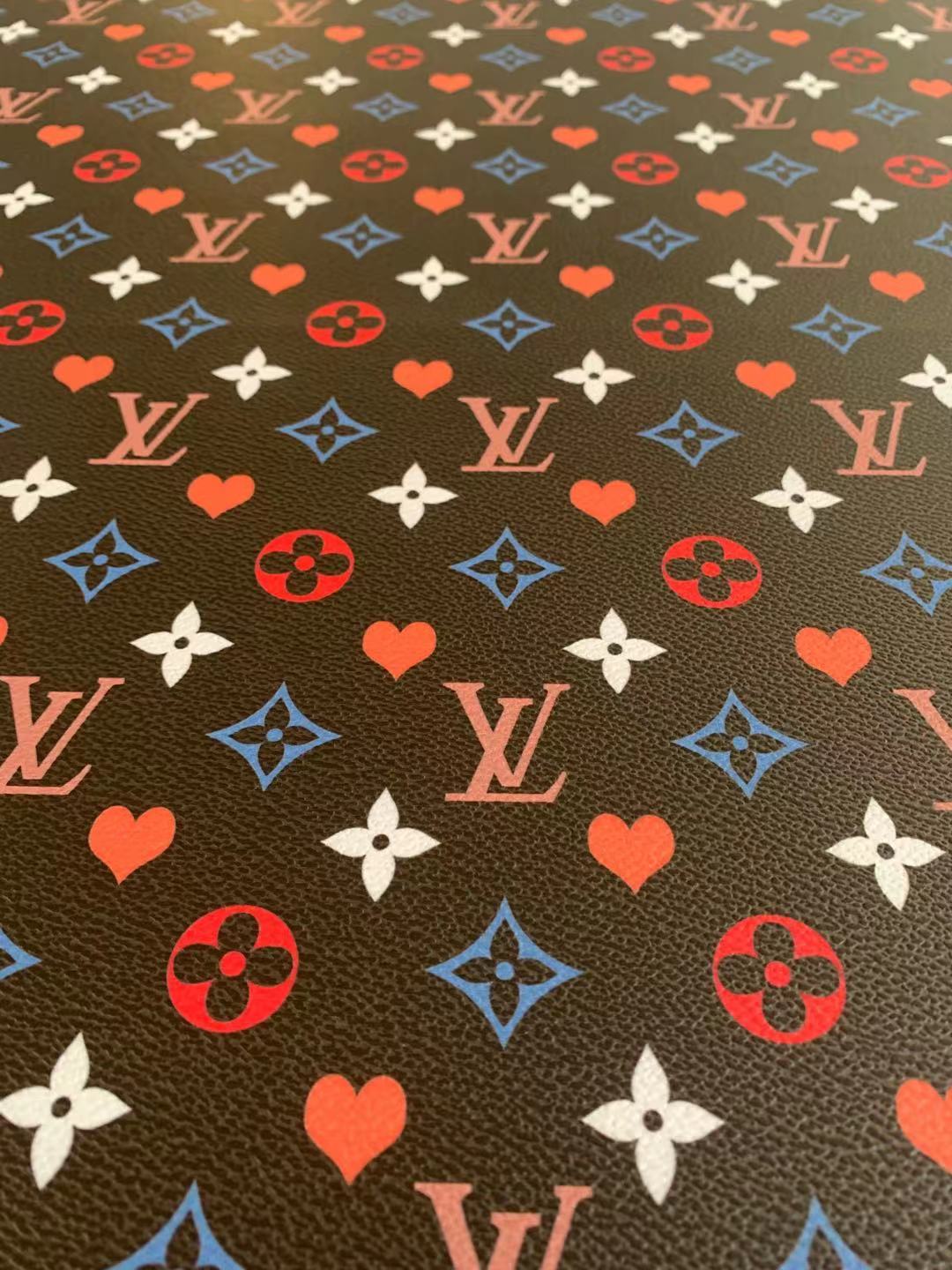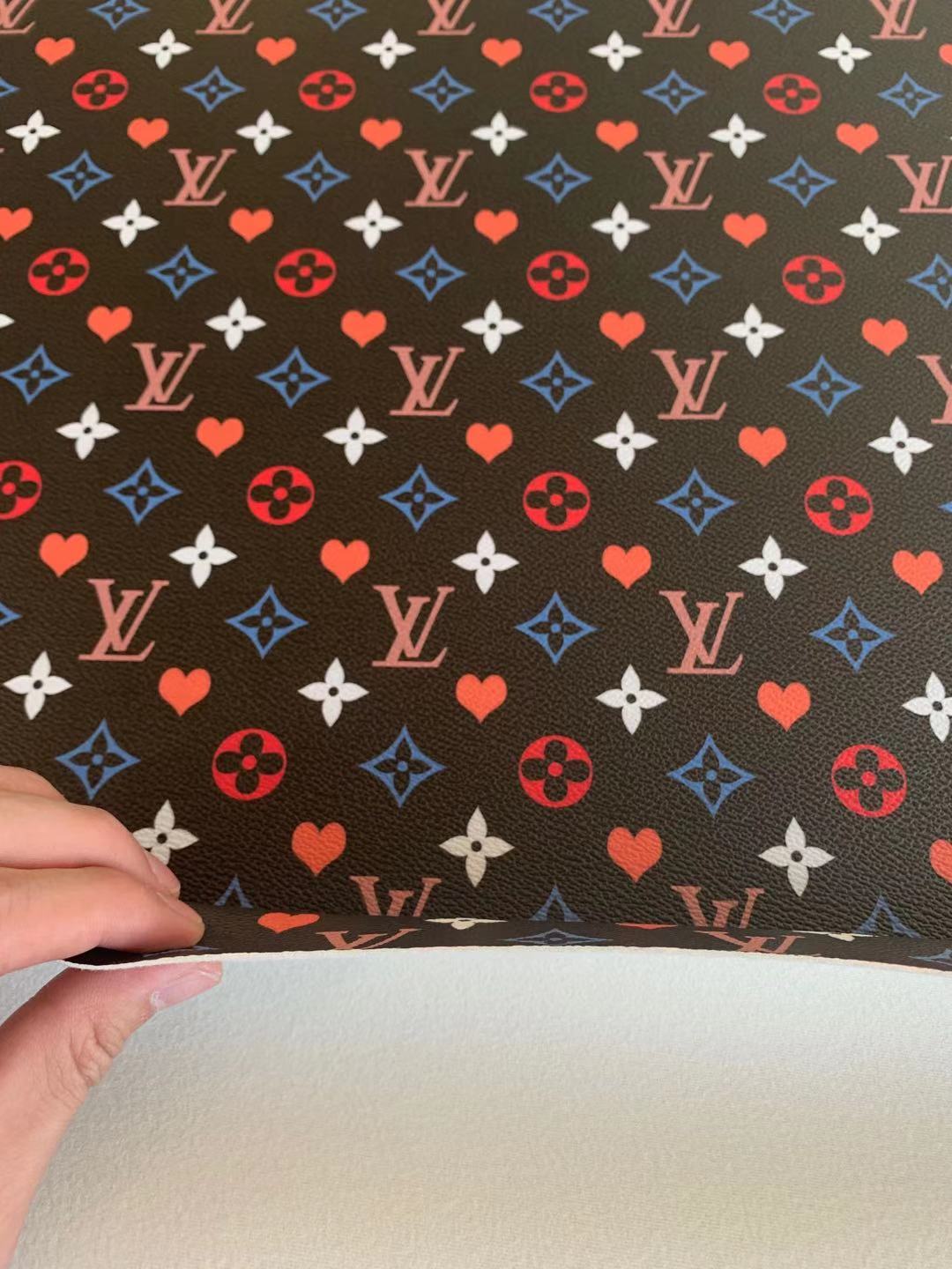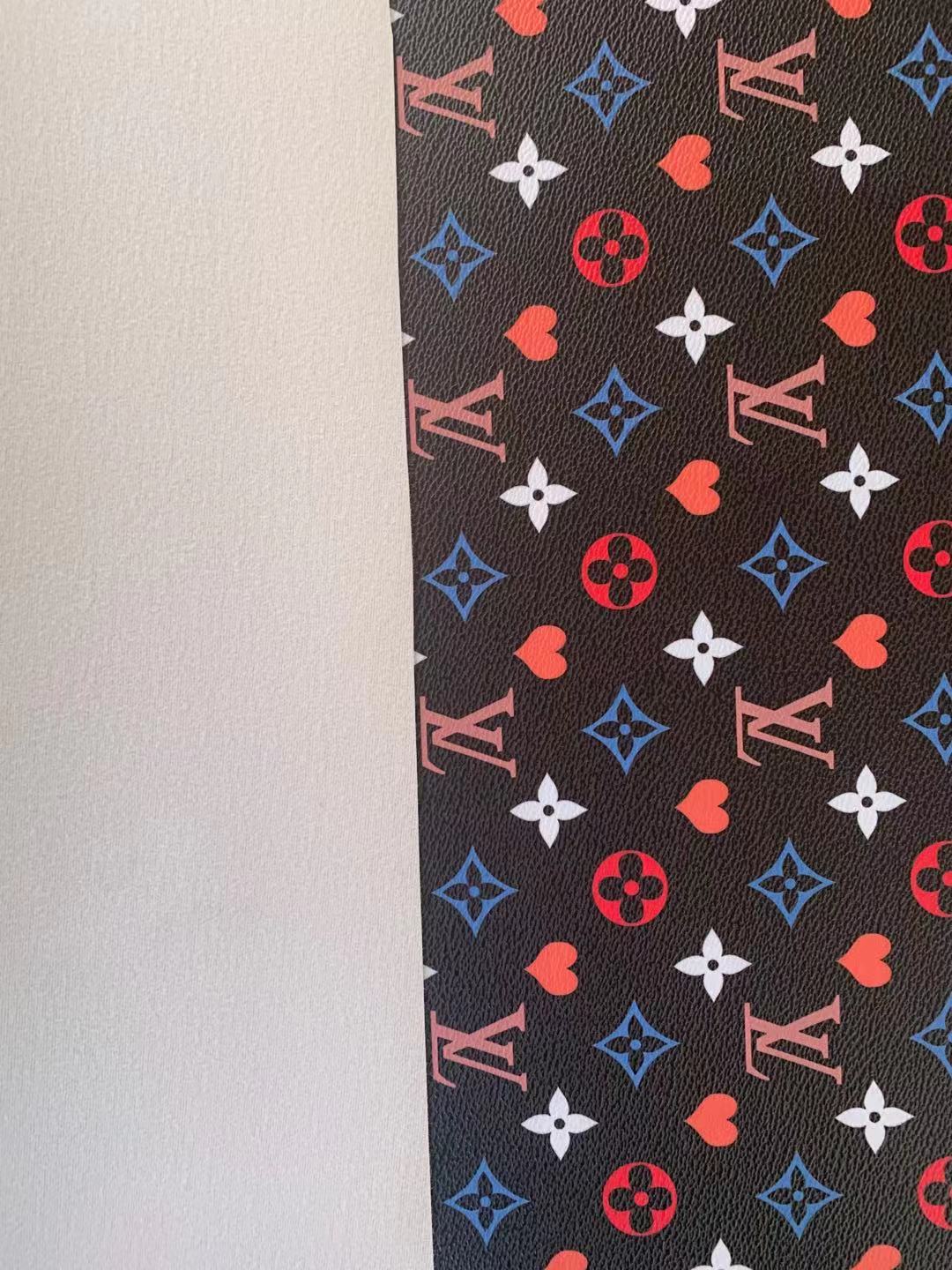 Classic Love LV Leather Case Fabric,Handmade Bag Fabric,Hand-made Shoes Leather Fabric By Yard (Black)