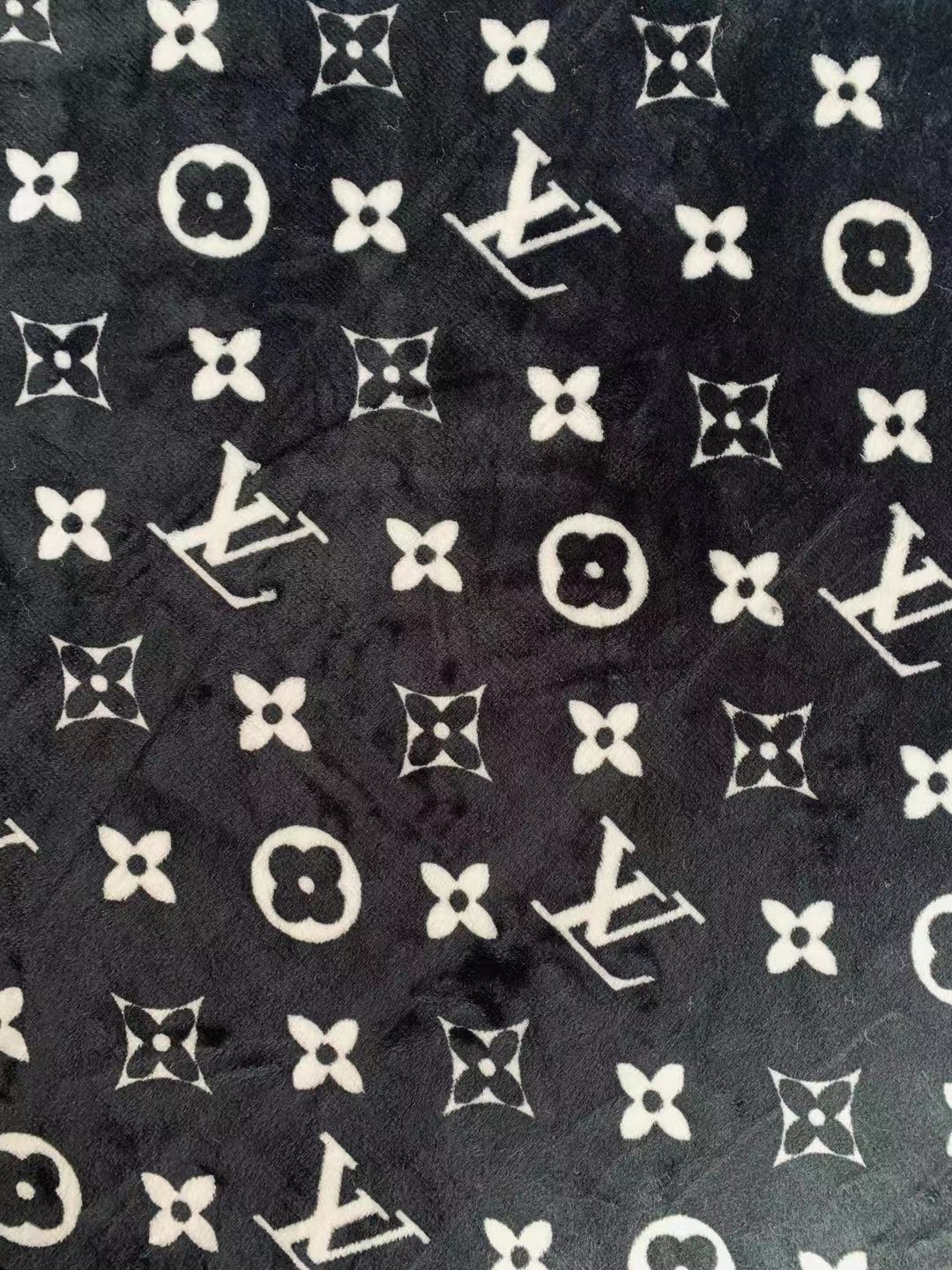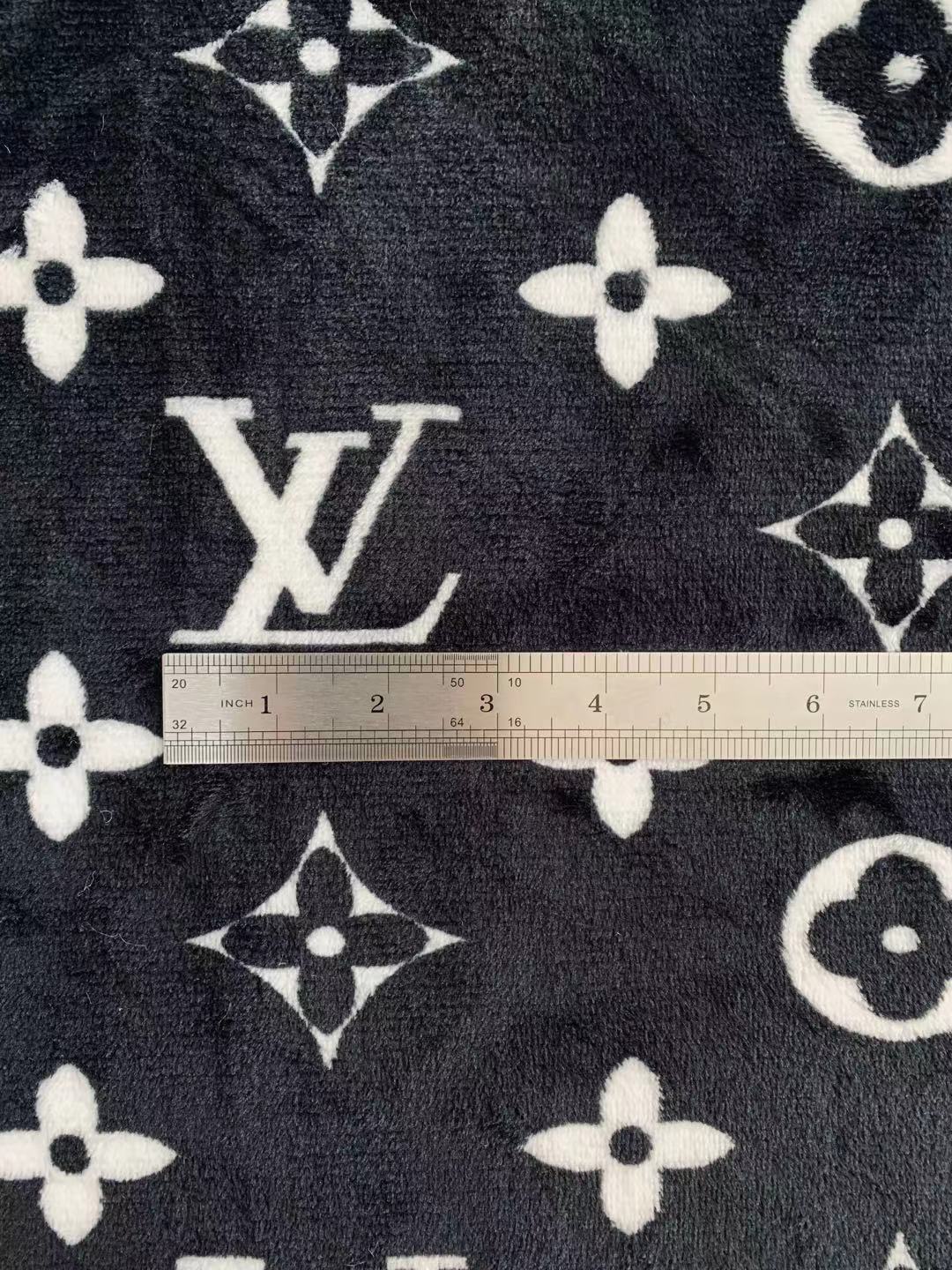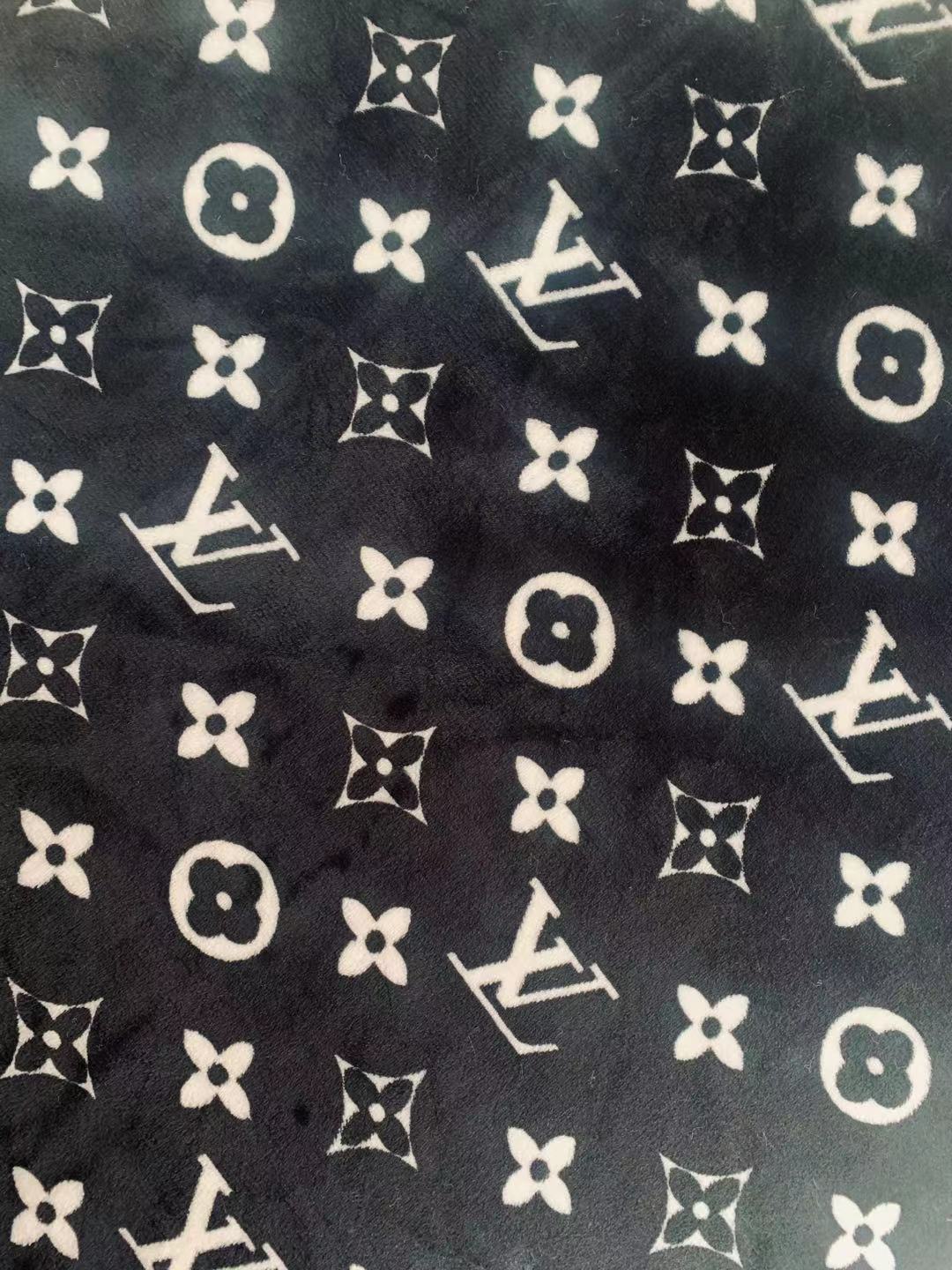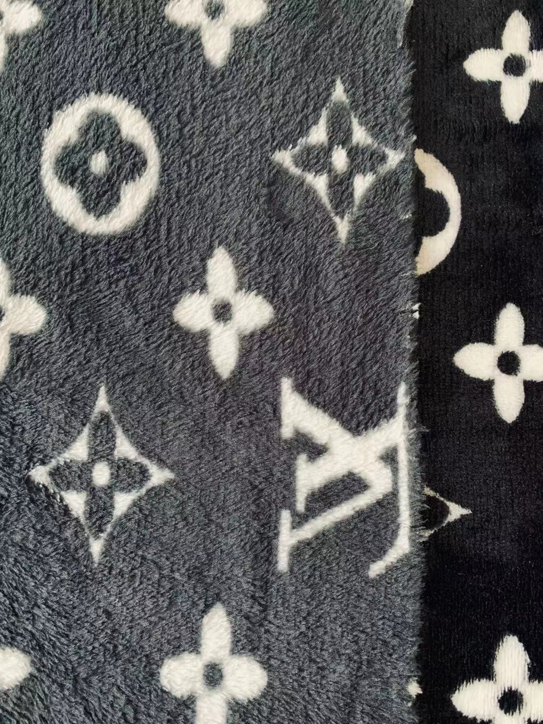 Classic LV Double-Sided Flannel Knitted Jacquard Plush Fabric For Handmade Handicrafts By Yards (Black)
