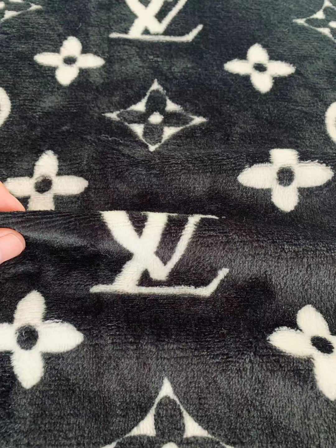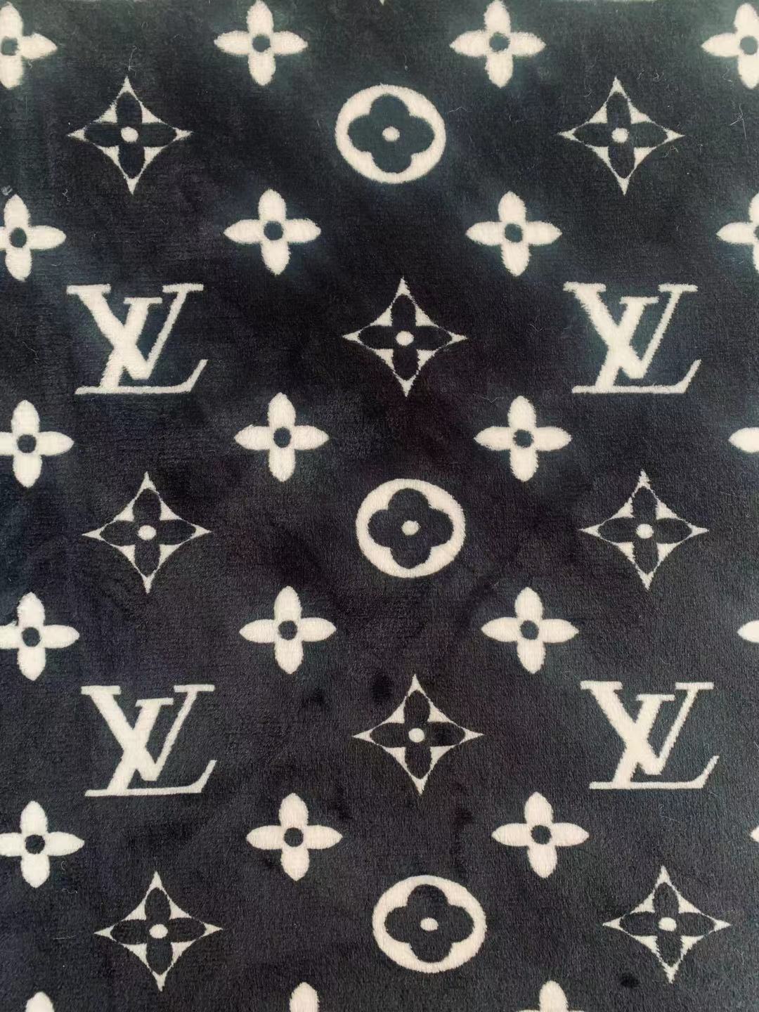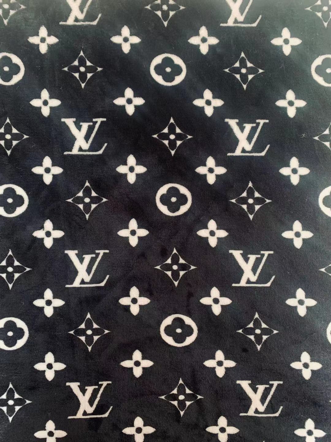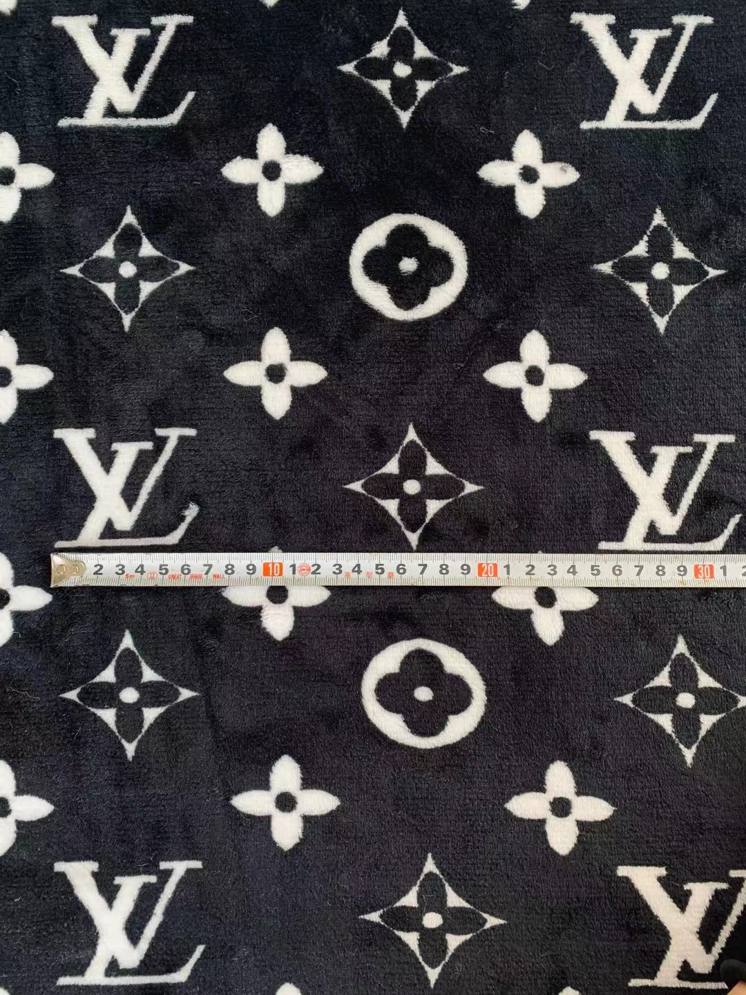 Classic LV Double-Sided Flannel Knitted Jacquard Plush Fabric For Handmade Handicrafts By Yards (Black)