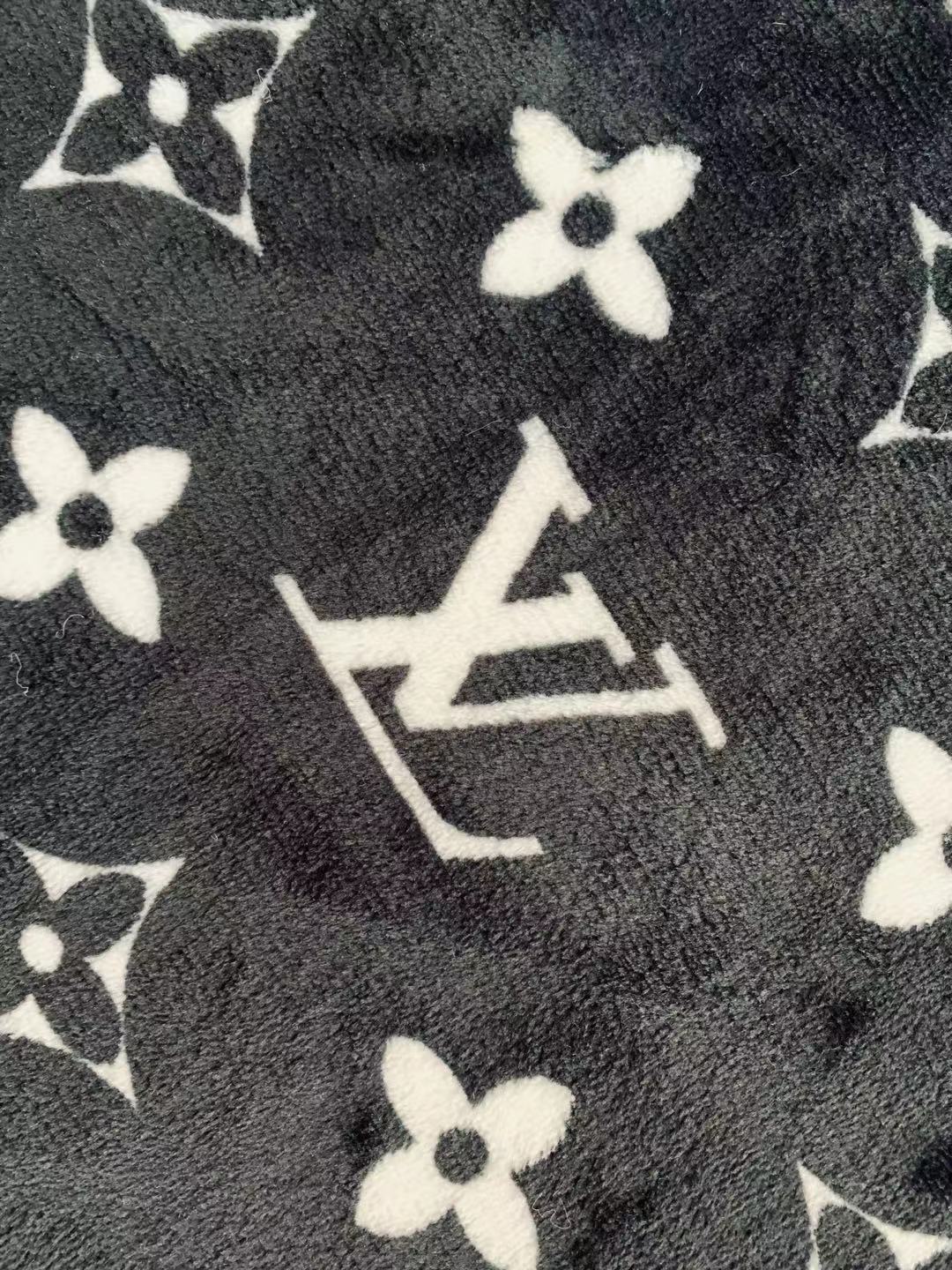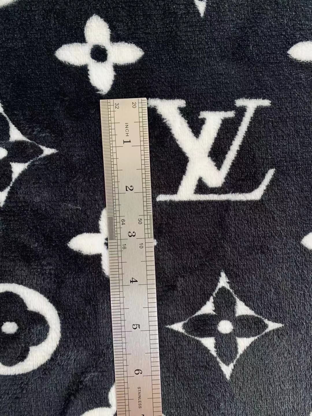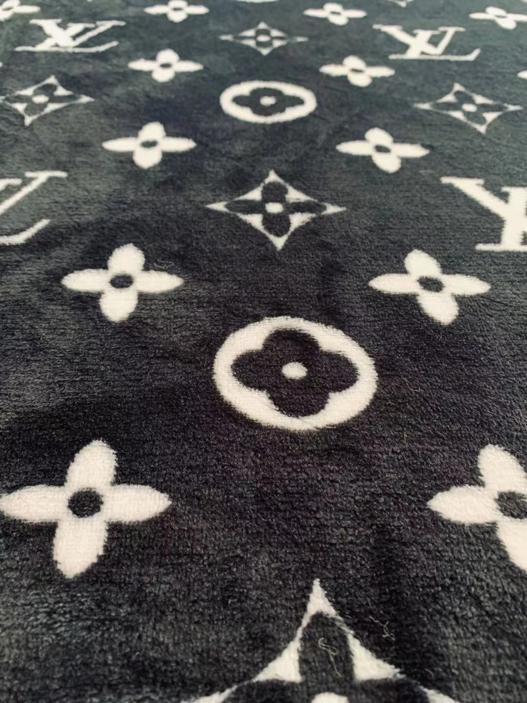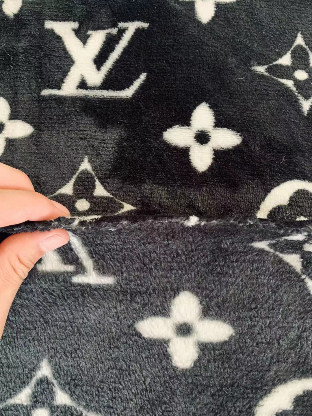 Classic LV Double-Sided Flannel Knitted Jacquard Plush Fabric For Handmade Handicrafts By Yards (Black)