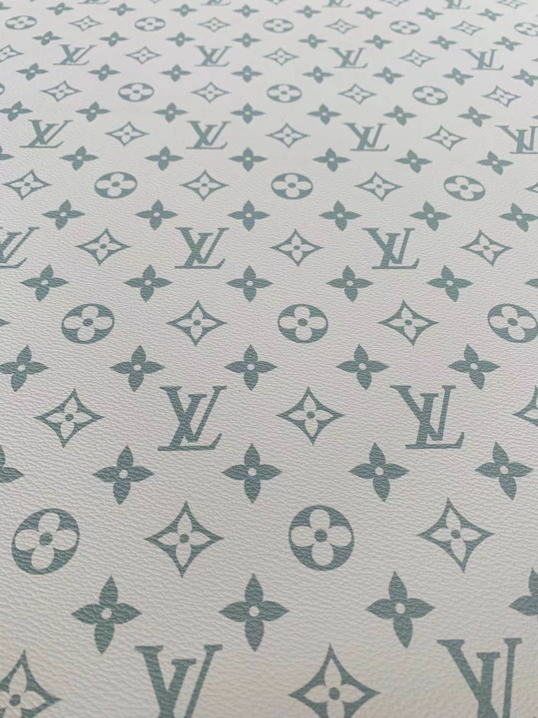 Classic LV vinyl crafting leather fabric For Handmade Shoes,Furniture ,Bike ,Bag and DIY Handicrafts By Yard (Dark black With green)
