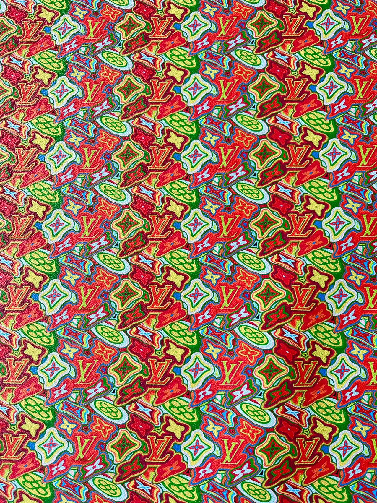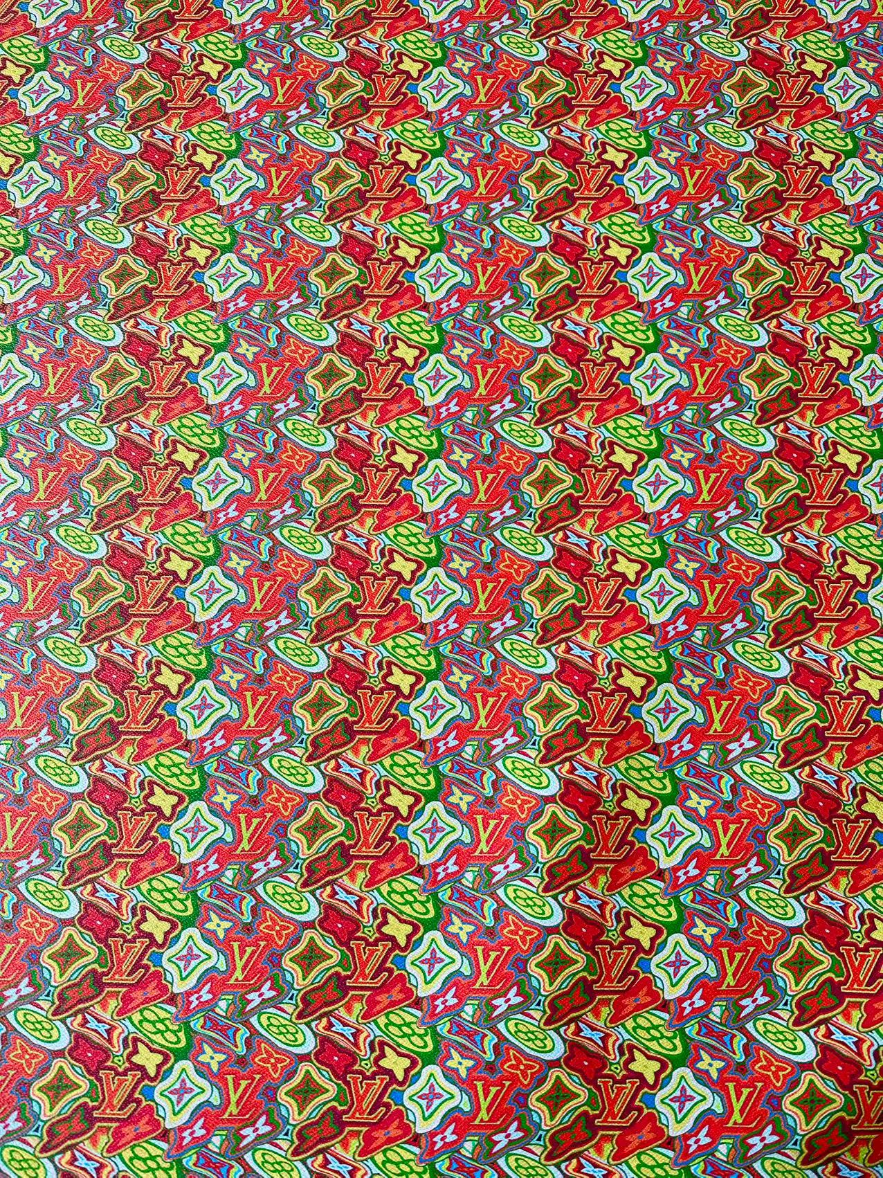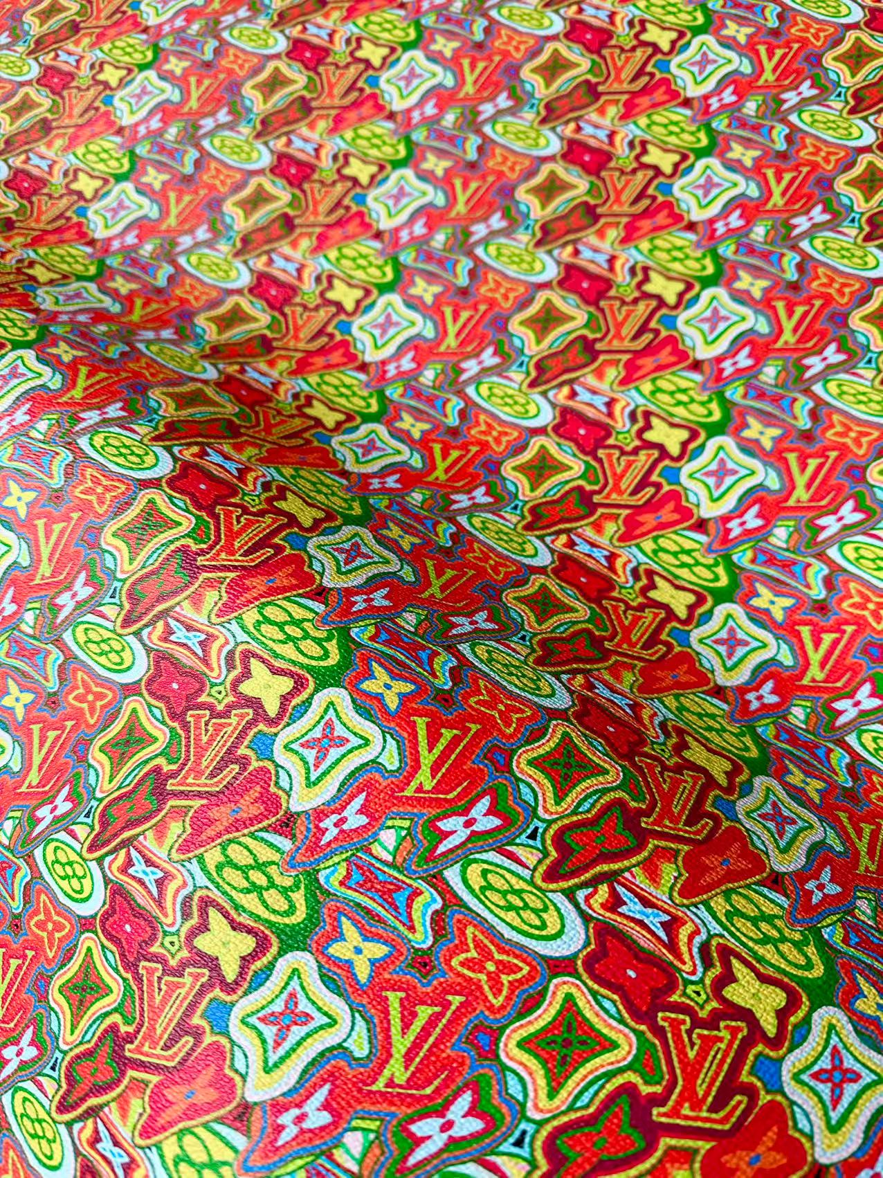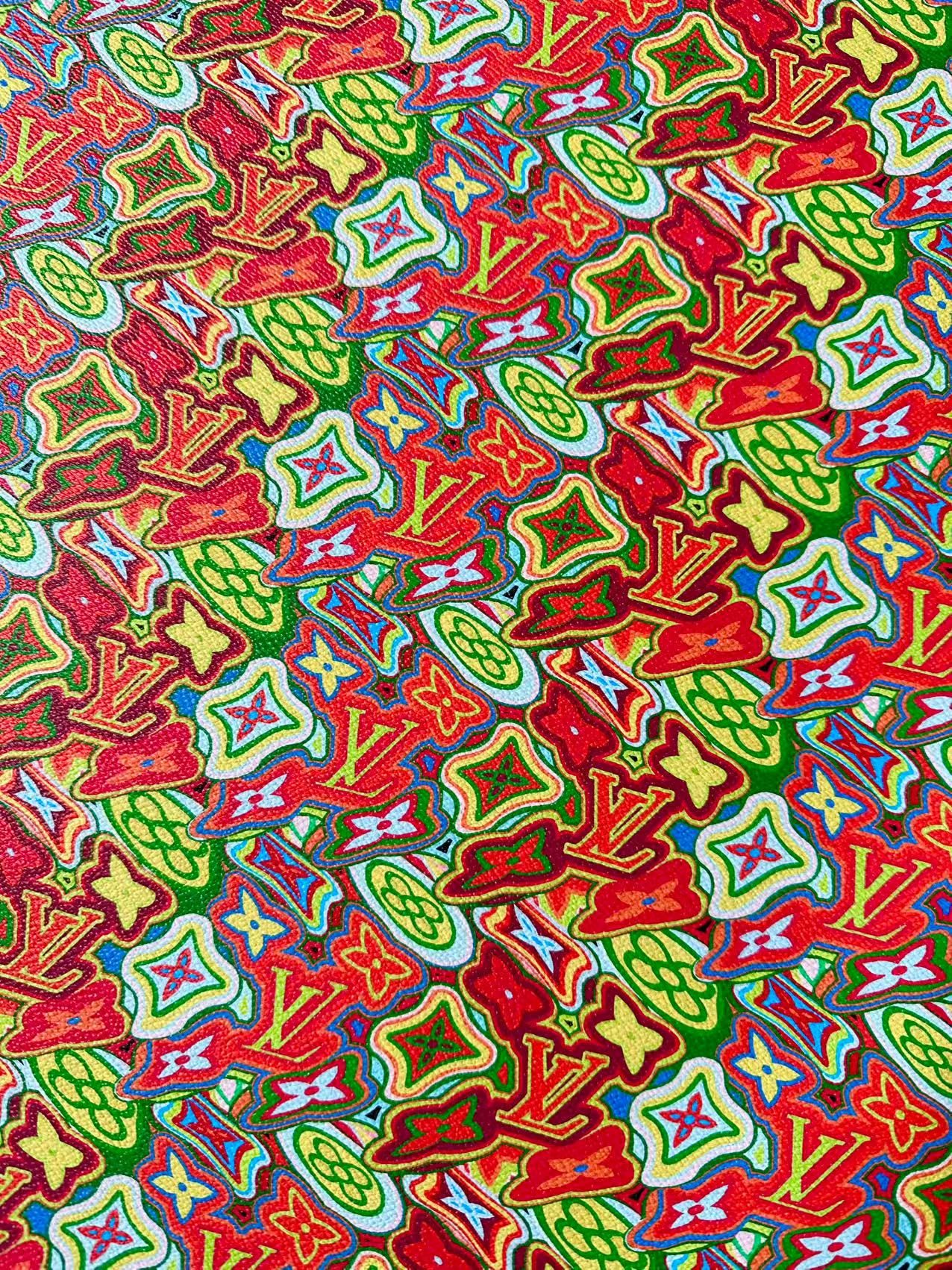 Classic LV Vinyl Geometric Leather Case Fabric For Handmade Bag ,Shoes,Sneaker Fabric By Yard