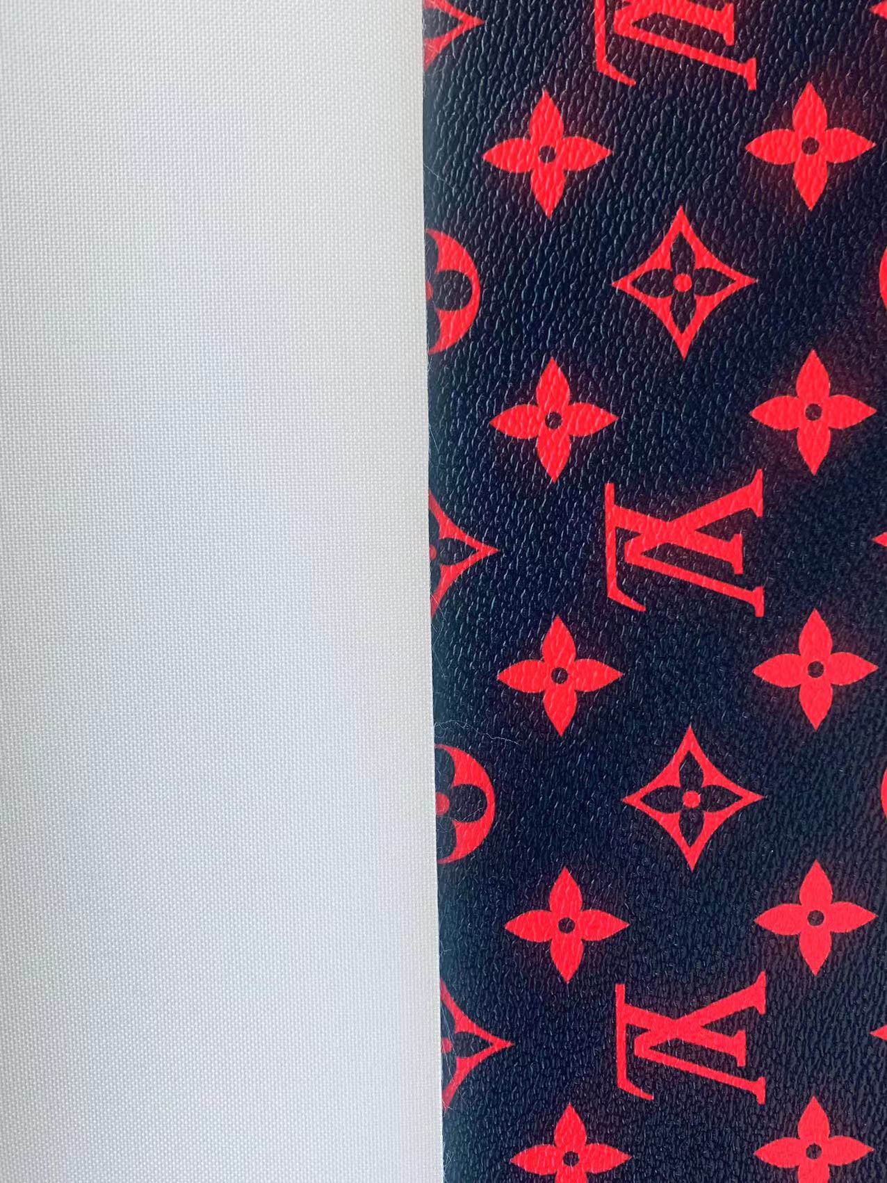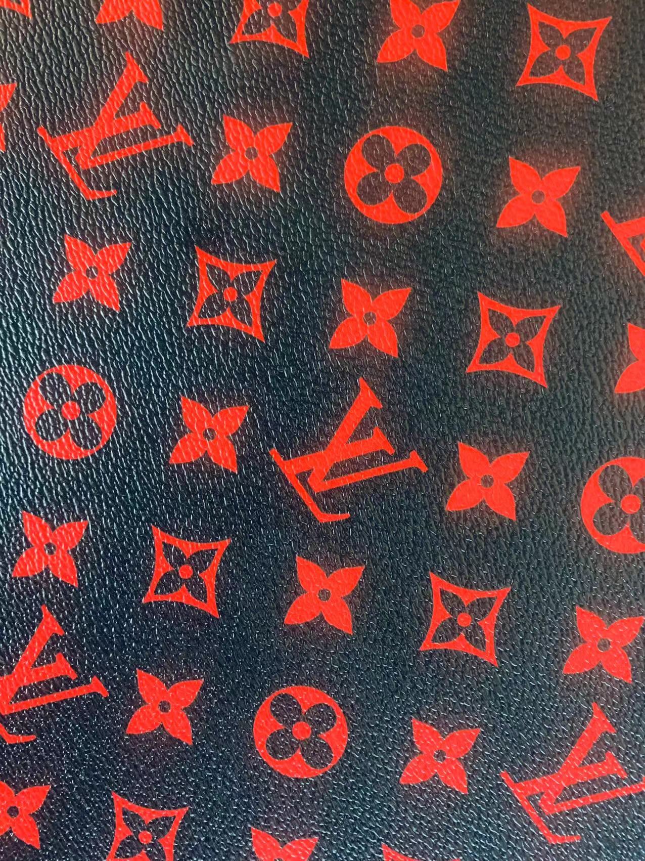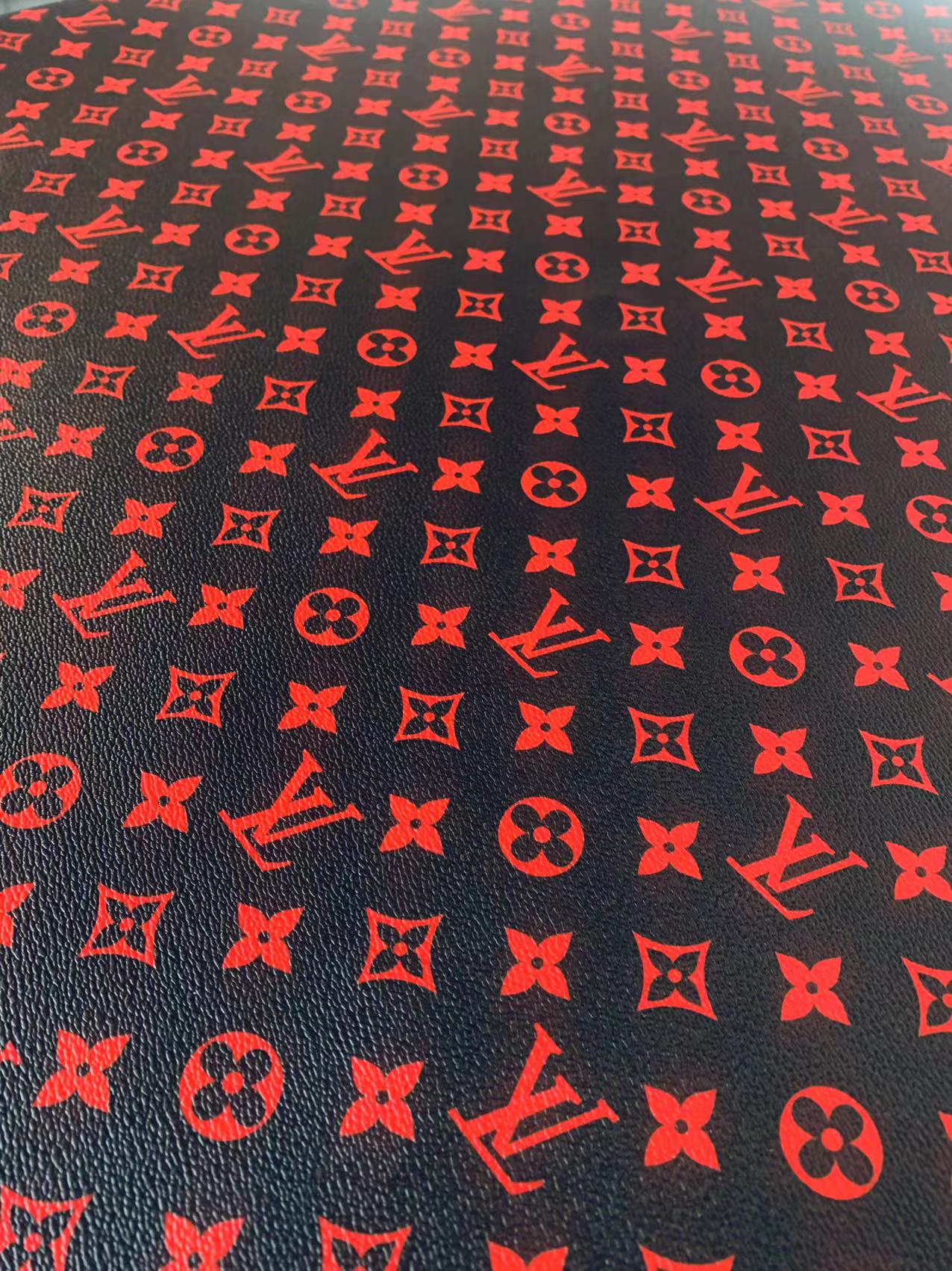 Classic LV Vinyl Leather Case Fabric, Handmade Bag Fabric ,Hand-made Shoes Fabric By Yard(Black With Red)